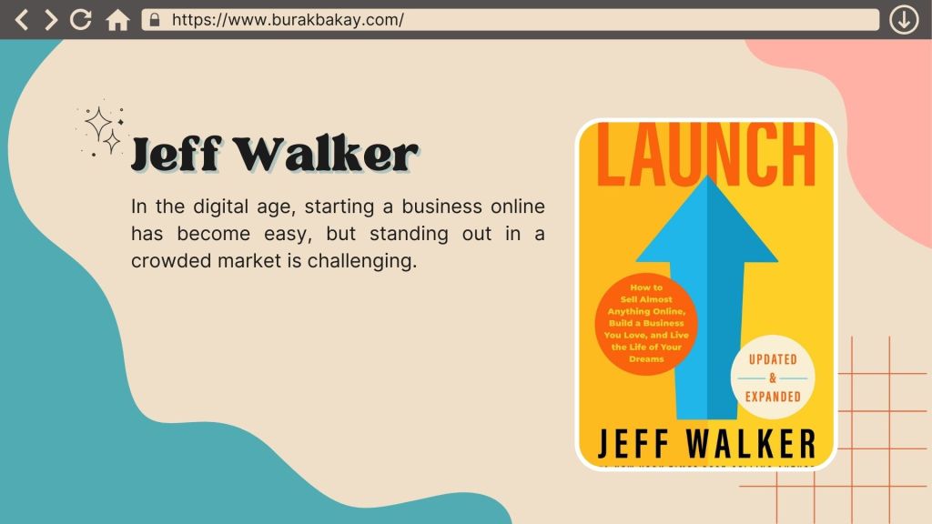 In the digital age, starting a business online has become easy, but standing out in a crowded market is challenging. Jeff Walker’s “Launch” provides a strategy for product launch that requires minimal start-up costs and emphasizes value and customer engagement to create a profitable and flexible business.