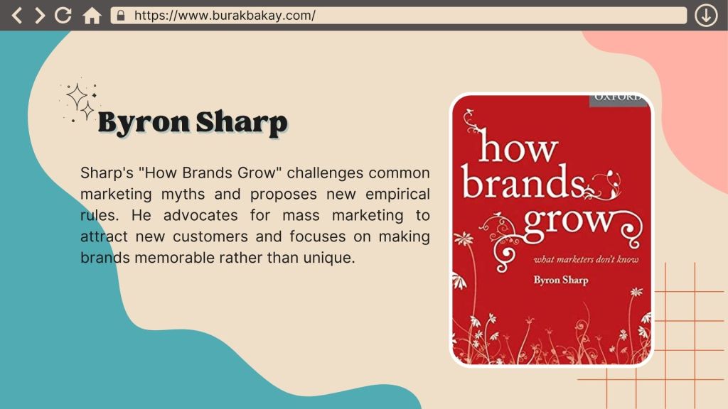 Sharp’s “How Brands Grow” challenges common marketing myths and proposes new empirical rules. He advocates for mass marketing to attract new customers and focuses on making brands memorable rather than unique. Sharp asserts that mass marketing is still the most effective way to grow.